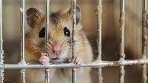 Hamster Escapes from Prison, Captured in a Playful Scene with Tiny Jail Bars and an Adorable Rodent Making Its Escape, Creating a Whimsical and Entertaining Illustration