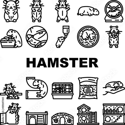 hamster hamster cute app pet coin icons set vector. rodent funny, syrian adorable, guinea bedding, animal little hamster hamster cute app pet coin black contour illustrations