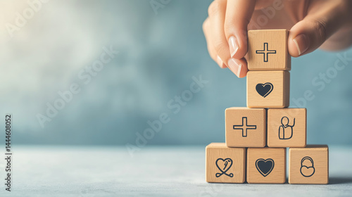 Hand building wooden block tower symbols