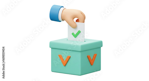Hand casting a vote in a ballot box for an election, isolated on transparent cutout background, cut out, png
