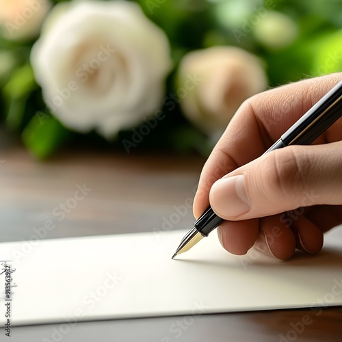 hand close up writing a card with fountain pen
