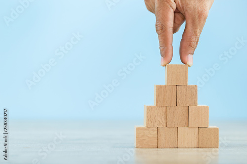 Hand Closer up hands of businessmen,stacking wooden blocks into steps,Concept of business growth success