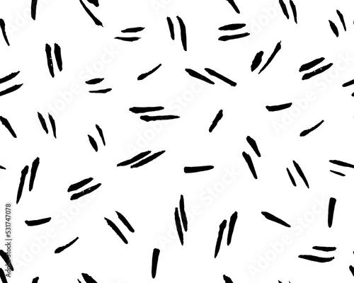 Hand crafted Black and white ethnic, geometric seamless pattern. Vector scandinavian background with brush ink strokes. Simple pattern. Perfect for fabric, wrapping paper, textile, home decor