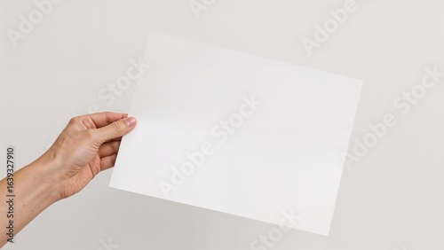 Hand Displaying a Blank Page, Diagonal Paper Mockup Photograph