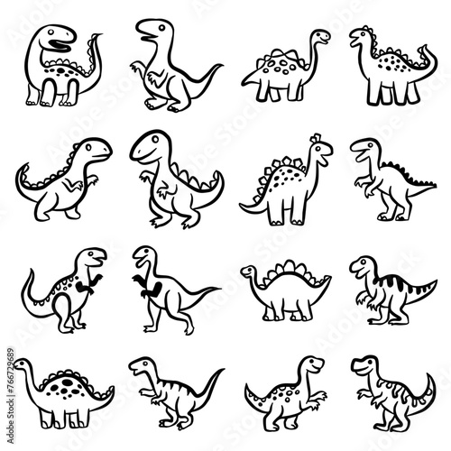 Hand Draw Dinosaurs Set Doodle Vector Illustration