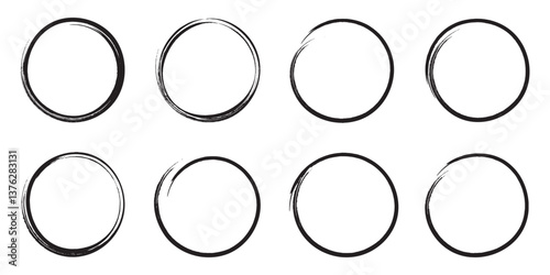 Hand drawing different circles isolated on white background. Hand written brush circles for marking text, numbers, marker pen, pencil, logo, hand drawn doodle grunge circle highlights. Vector eps 10