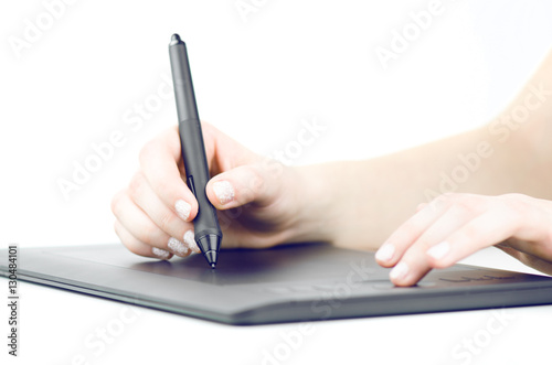 Hand Drawing On Professional Graphic Tablet Isolated On White