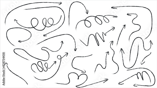 Hand drawn arrows set. A set of arrows. A set of curved arrows. for business and education. vector illustration