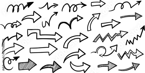 Hand drawn arrow doodle vector. Different arrows pointing set. Design for business plan, education and infographic.