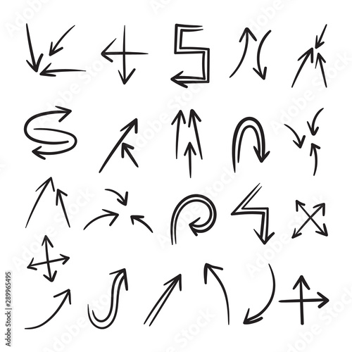 Hand drawn arrow mark icons. Collection of arrow signs, Black filigree arrows vector.