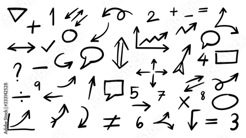 Hand drawn arrow vector icons set. sketch arrow design for business plan and education.