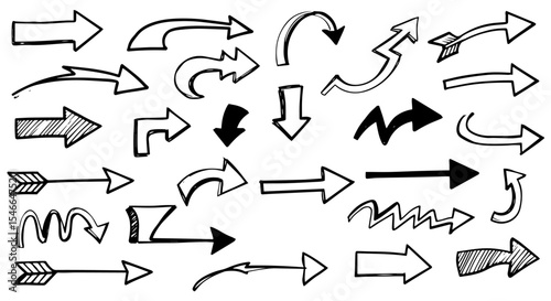 Hand drawn arrows collection. Set includes various shapes and styles of arrows perfect for design projects. Collection of hand drawn arrows ideal for presentations, websites, and infographics.