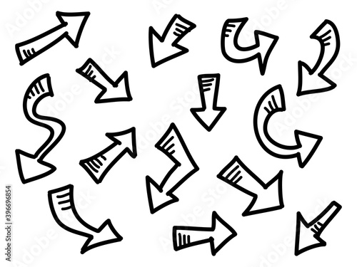 hand drawn Arrows icons Set. arrow icon with various directions. Doodle vector illustration. isolated on a white background