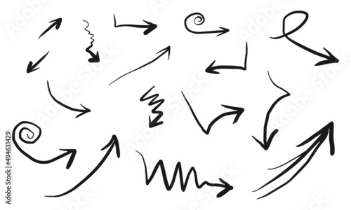 hand drawn Arrows icons Set. arrow icon with various directions. Doodle vector illustration. isolated on a white background