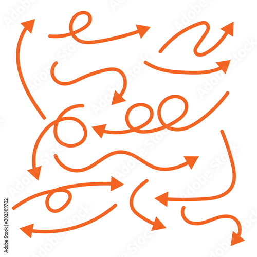 Hand drawn Arrows icons Set. Red arrow icon with various directions. Doodle vector illustration. isolated on a white backgroun
