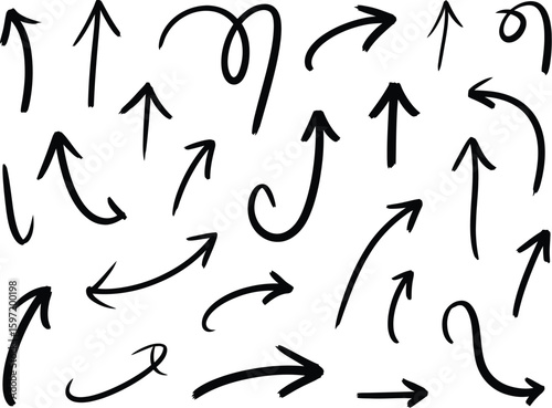 Hand drawn arrows vector set doodle style direction pointers sketch design elements collection hundred arrows