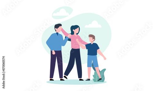 Hand drawn asian family illustration