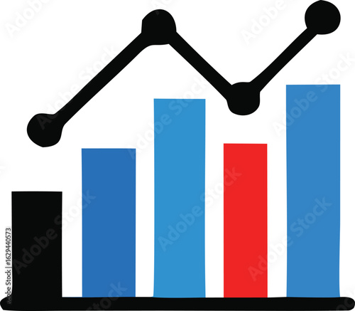 Hand drawn bar chart with a connecting line graph showing upward trend and data visualization for business growth and financial analysis
