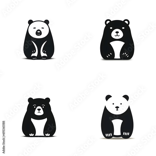 Hand drawn bear silhouette in a minimal style. Black and white graphic illustration isolated on white background