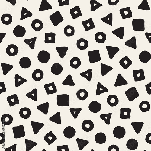 Hand drawn black and white ink abstract seamless pattern. Vector stylish grunge texture. Monochrome scattered shapes paint brush lines