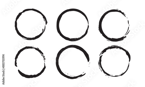 Hand drawn black circle line sketch set. vector charcoal brush strokes circles on white background. Ink hand drawn Chalk paint brush circle. Logo, label design element vector illustration.