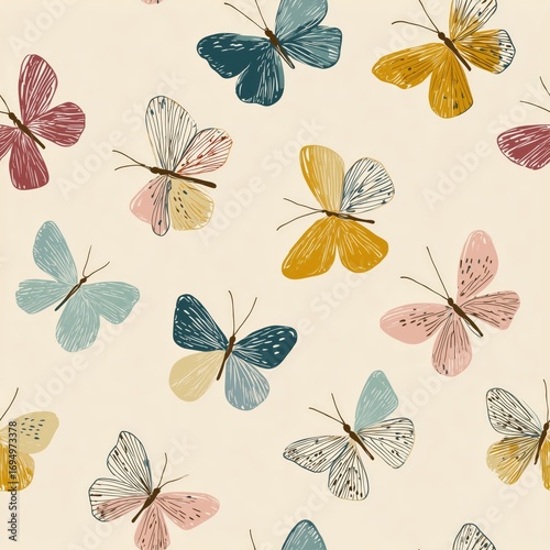 Hand Drawn Butterflies Seamless Pattern Pastel Colors