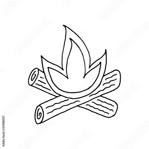 Hand drawn campfire editable doodle illustration. Bonfire simple drawing. Camping and hiking icon