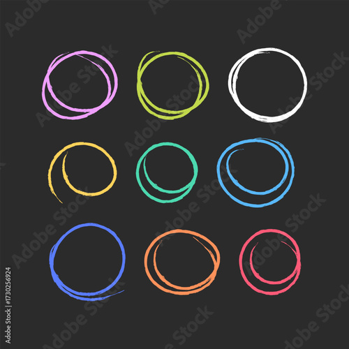 Hand drawn chalk selection multicoloured chalk circles and ovals, Vector illustration