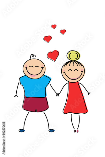 Hand drawn characters. Couple in love holding hands. Isolated on white background.