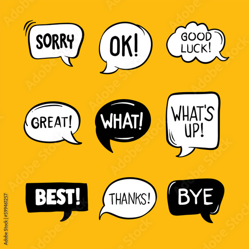 Hand drawn chat bubble vector element. Suitable for design of comic, infographic, and poster. Hand drawn text box element.