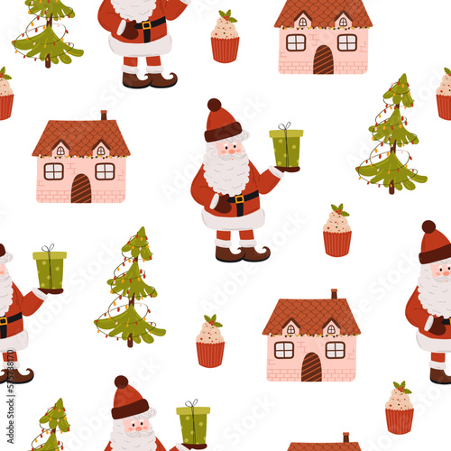 Hand Drawn Christmas or Holiday Pattern. Christmas pattern for surface design, wallpapers, fabrics, wrapping paper.