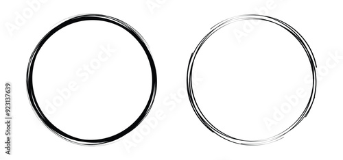 hand drawn circle. circular scribble line. round sketch frame. transparent png and vector illustration.