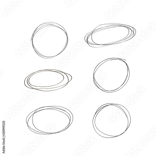 Hand drawn circle line sketch set. Vector circular scribble doodle. Vector illustration.