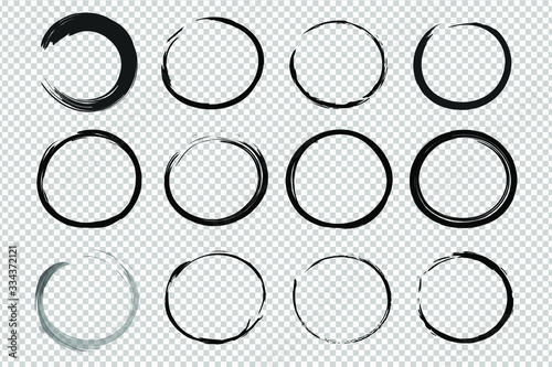 Hand drawn circle sketch frame set. Elements for concept design. Doodle style.