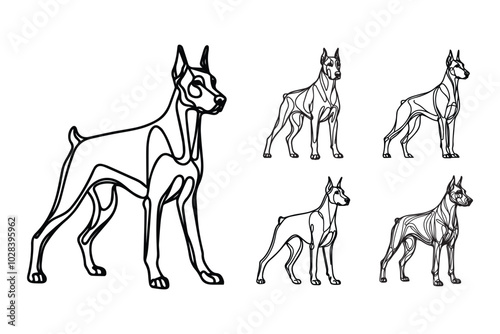 Hand drawn clipart featuring a bold Doberman dog standing confidently