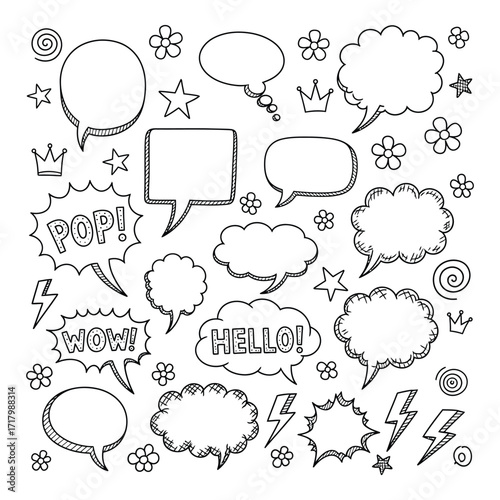 Hand drawn comic book speech bubbles and sound effects for creative projects silhouette