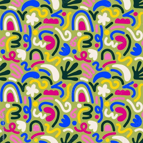 Hand drawn contemporary art collage with abstract shapes. Vector seamless pattern with Scandinavian cut out elements.