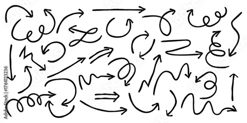Hand Drawn Curved Arrows Collection in Sketch Style on White Background