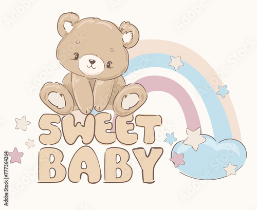 Hand Drawn Cute little Teddy Bear, vector illustration, Print for baby, newborns design