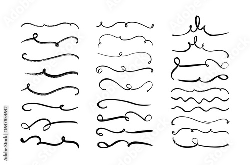 Hand drawn decorative line collection. Cute waves, romantic borders. Wedding invitation or birthday card. Whimiscal style vector isolated design