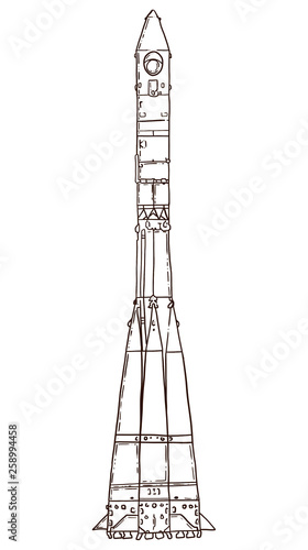 Hand drawn digital sketch illustration of space rocket carrier isolated on white art