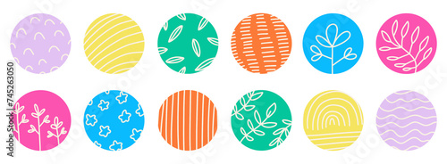Hand drawn doodle abstract aesthetic floral shapes symbols illustration vector set banner wallpaper background modern pattern design rainbow squiggle circle bullet point to do symbol bright color png