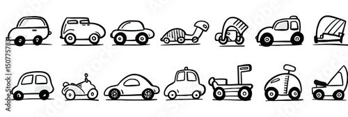 Hand Drawn Doodle Car Set � Funny Sketch Style Toy Vehicle Vector Illustration