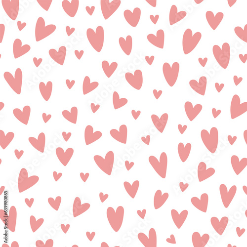 Hand drawn doodle hearts on a background seamless pattern. Valentine`s day theme.Vector illustration.
