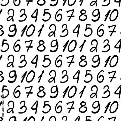 Hand drawn doodle numbers seamless pattern. Mathematical background for children. Black and white scandinavian style, back to school. Vector graphics