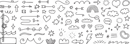 Hand Drawn Doodle Vector Set Arrows Hearts Stars Clouds for Decoration