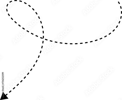 Hand drawn dotted arrows set. Hand drawn freehand different curved lines, swirls arrows. Curved arrow line. Doodle, sketch style. Isolated Vector illustration.