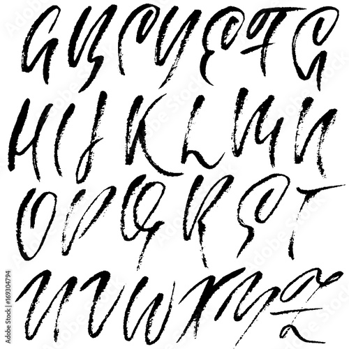 Hand drawn dry brush font. Modern brush lettering. Grunge style alphabet. Vector illustration.