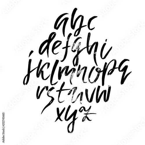 Hand drawn dry brush lettering. Grunge style alphabet. Handwritten font. Vector illustration.