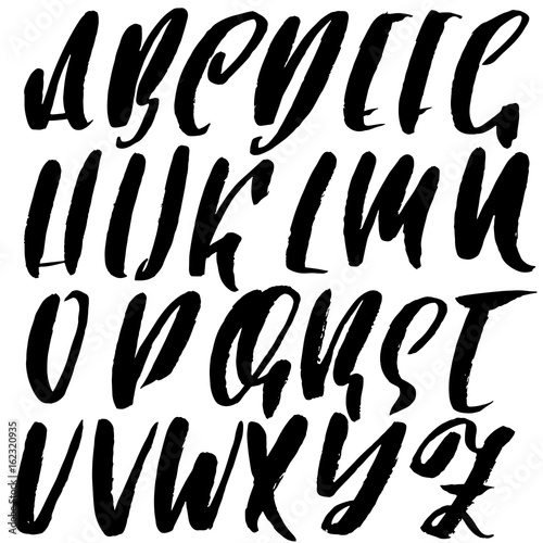 Hand drawn elegant calligraphy font. Modern brush lettering. Grunge style alphabet. Vector illustration.